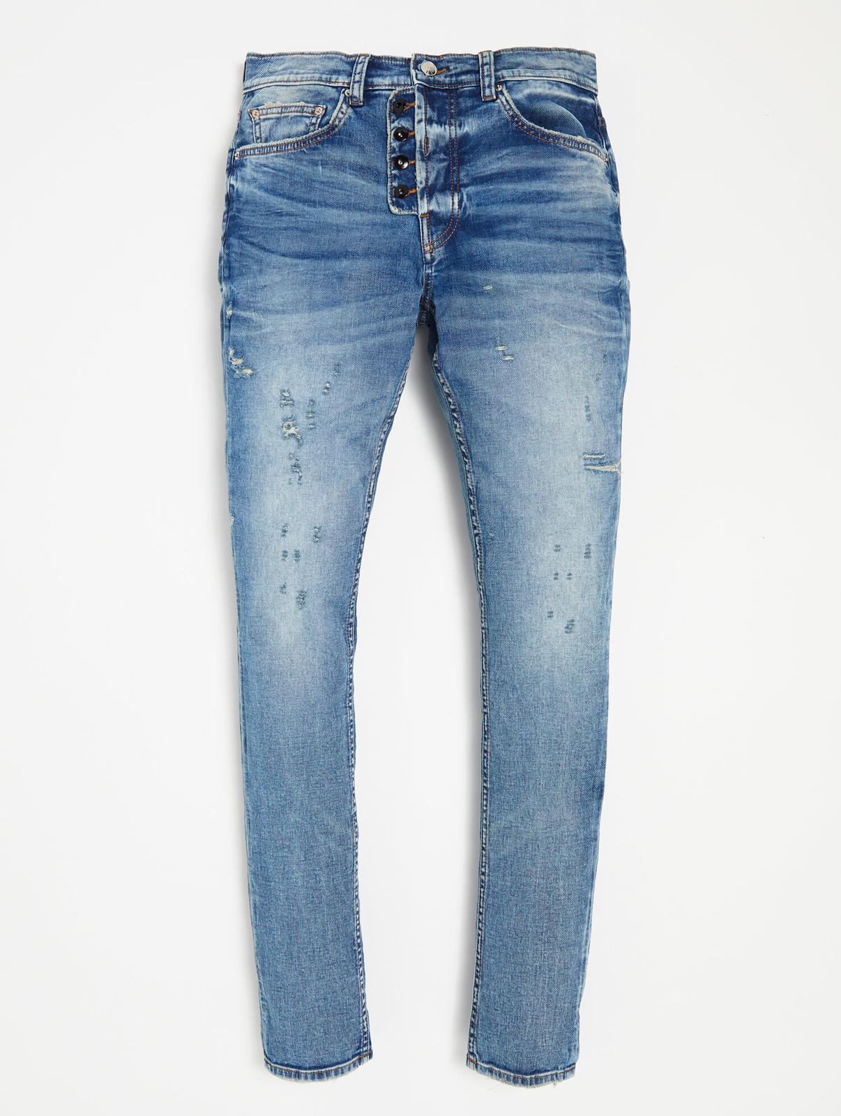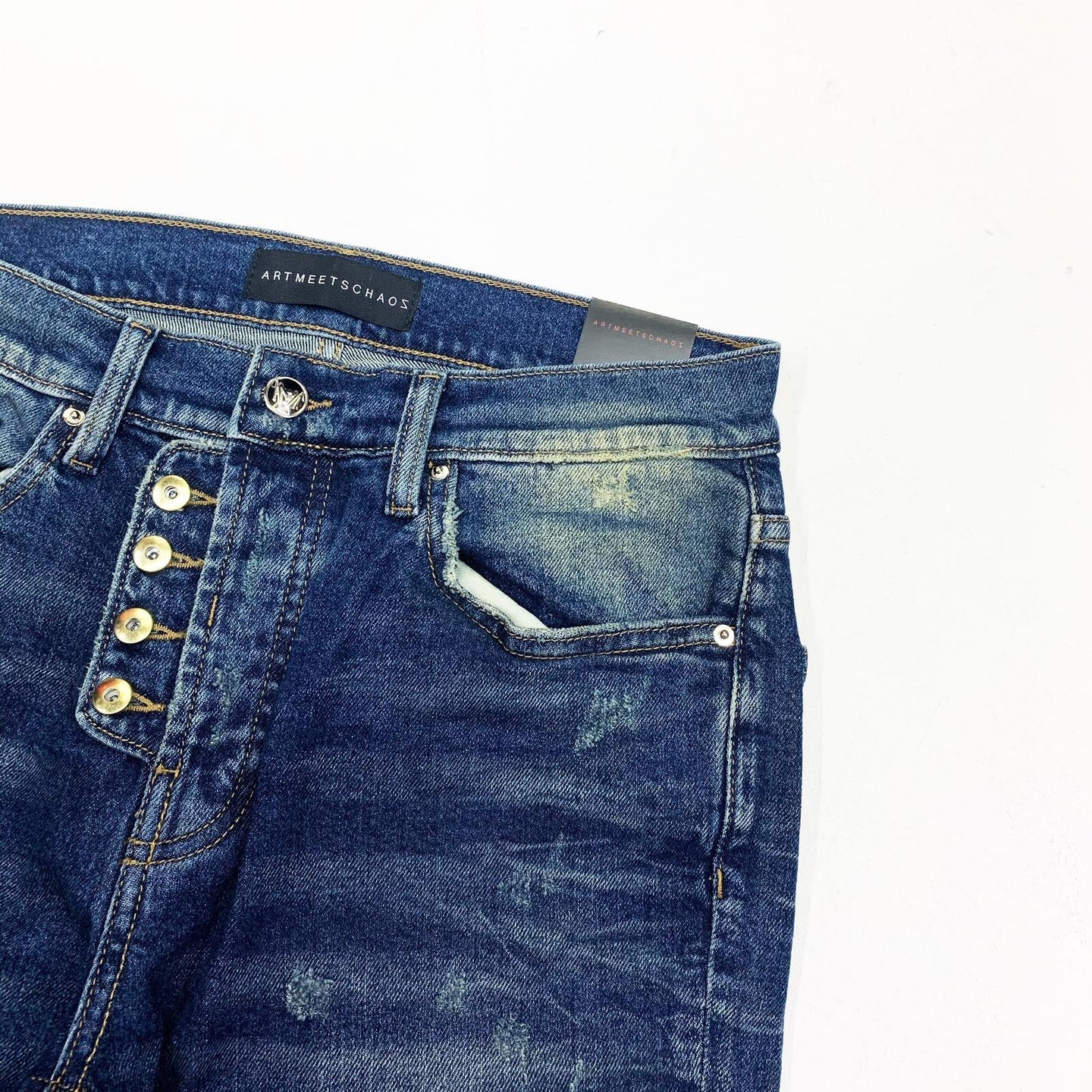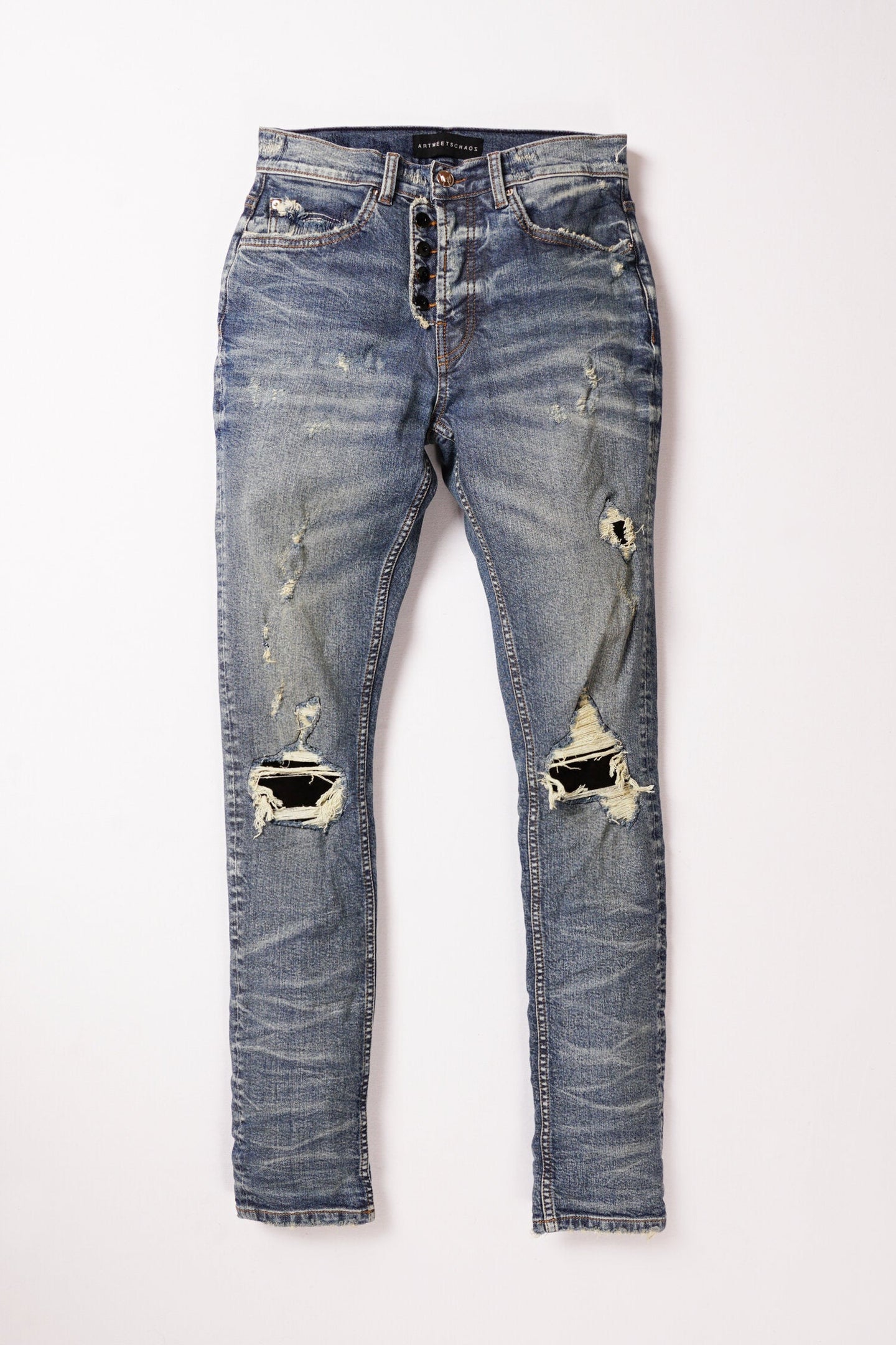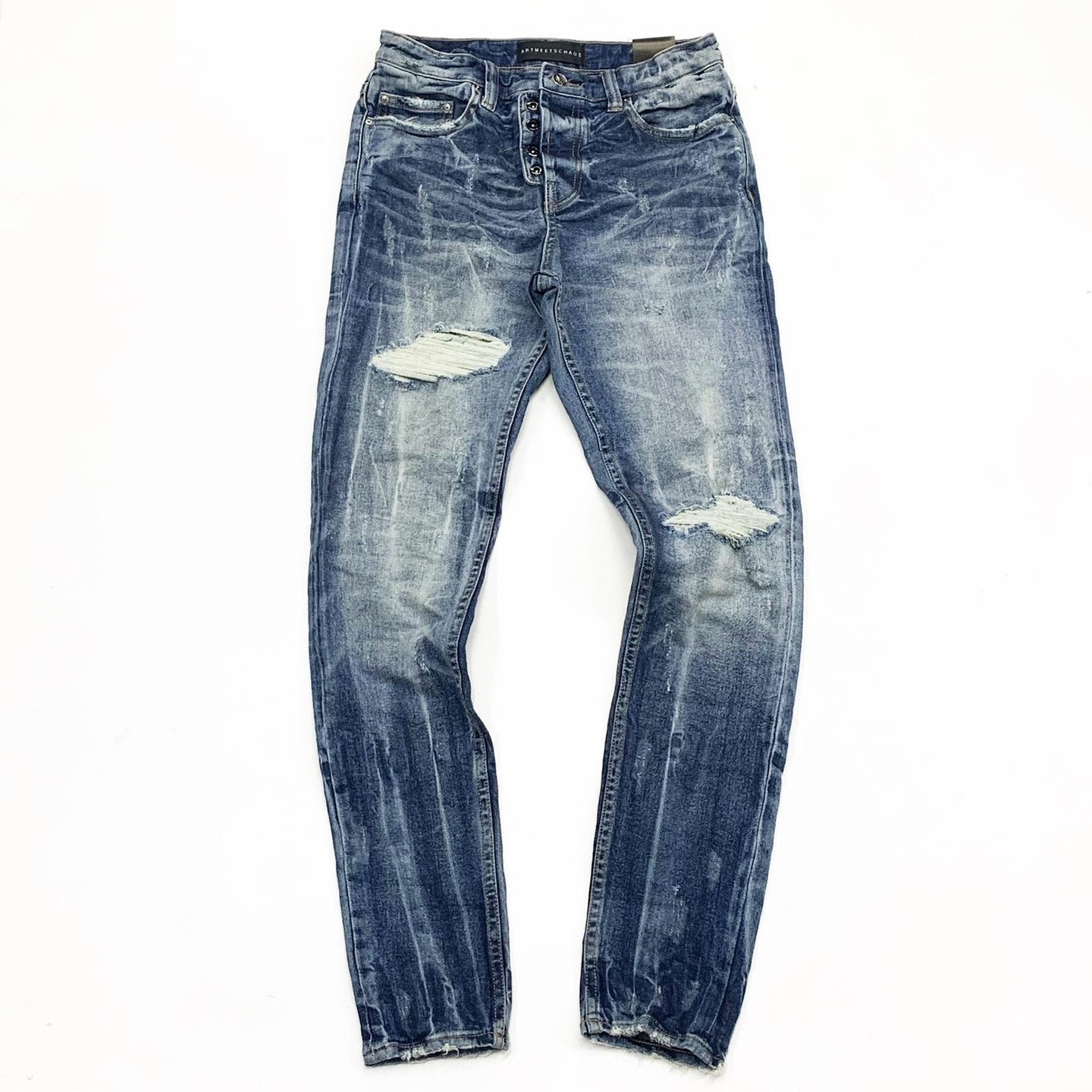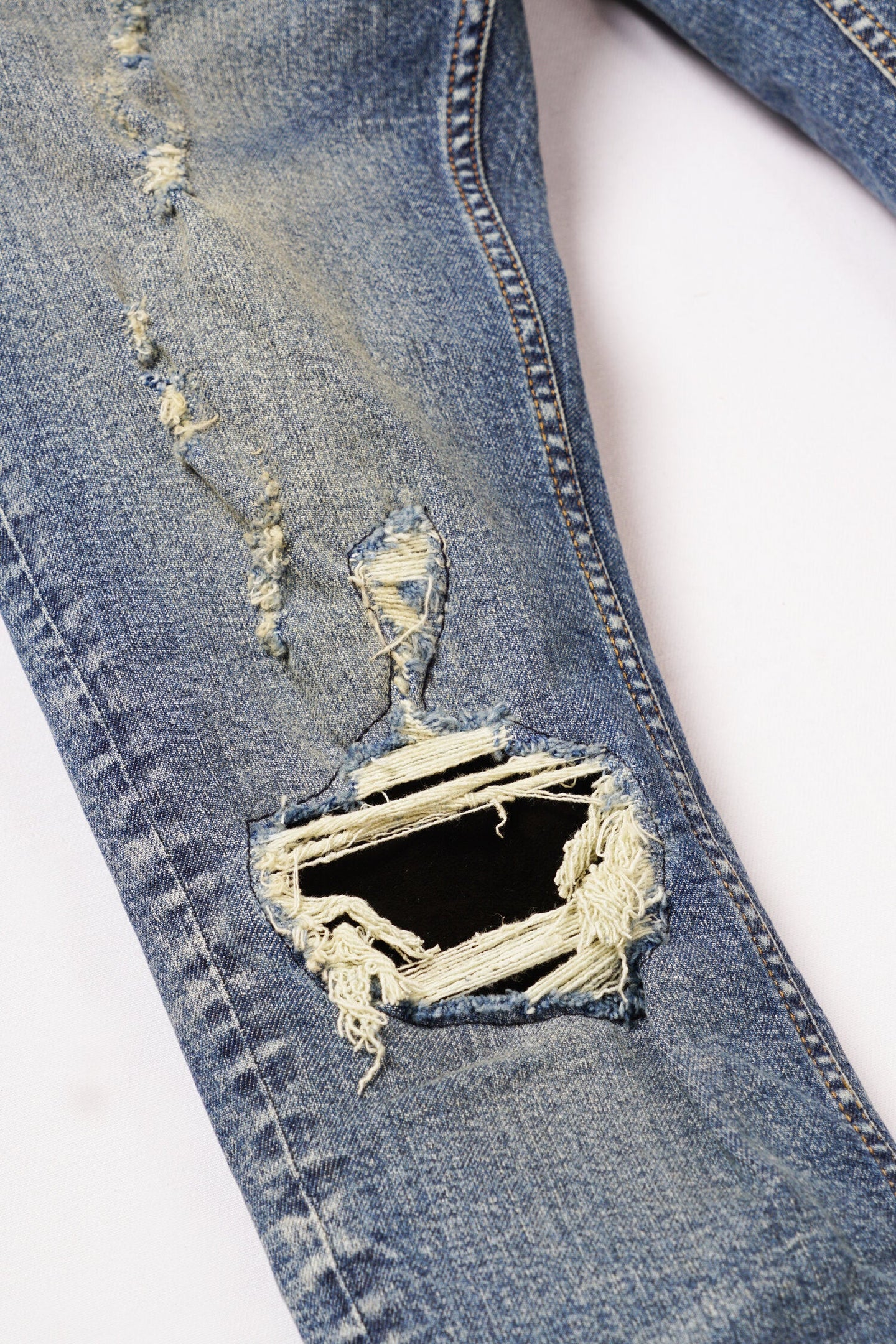 Armor Jeans Men’s Vintage Wash Cargo Stacked Jeans Blue Logo Embroidery