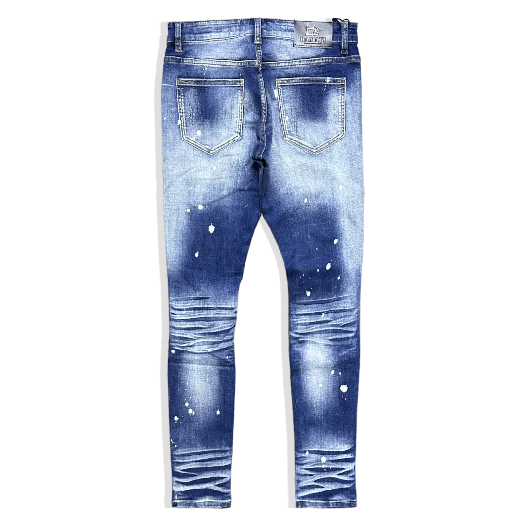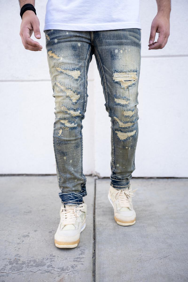 Damati denim (Tan blue cargo stacked premium denim jean)