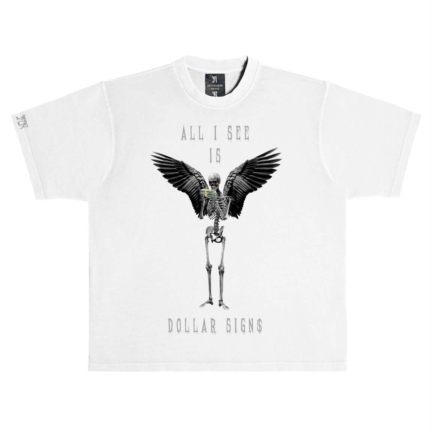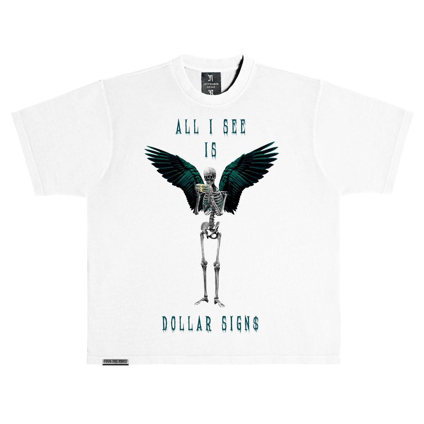 November Reine (White/Midnight Green "Dollar Signs" T-Shirt)