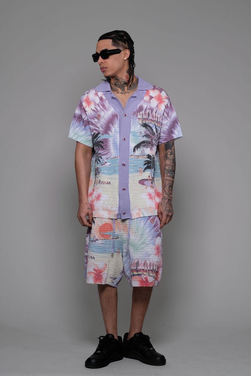 Vicious Denim Knitted Crochet Printed Button Down Set – Cream