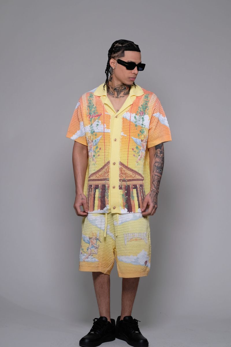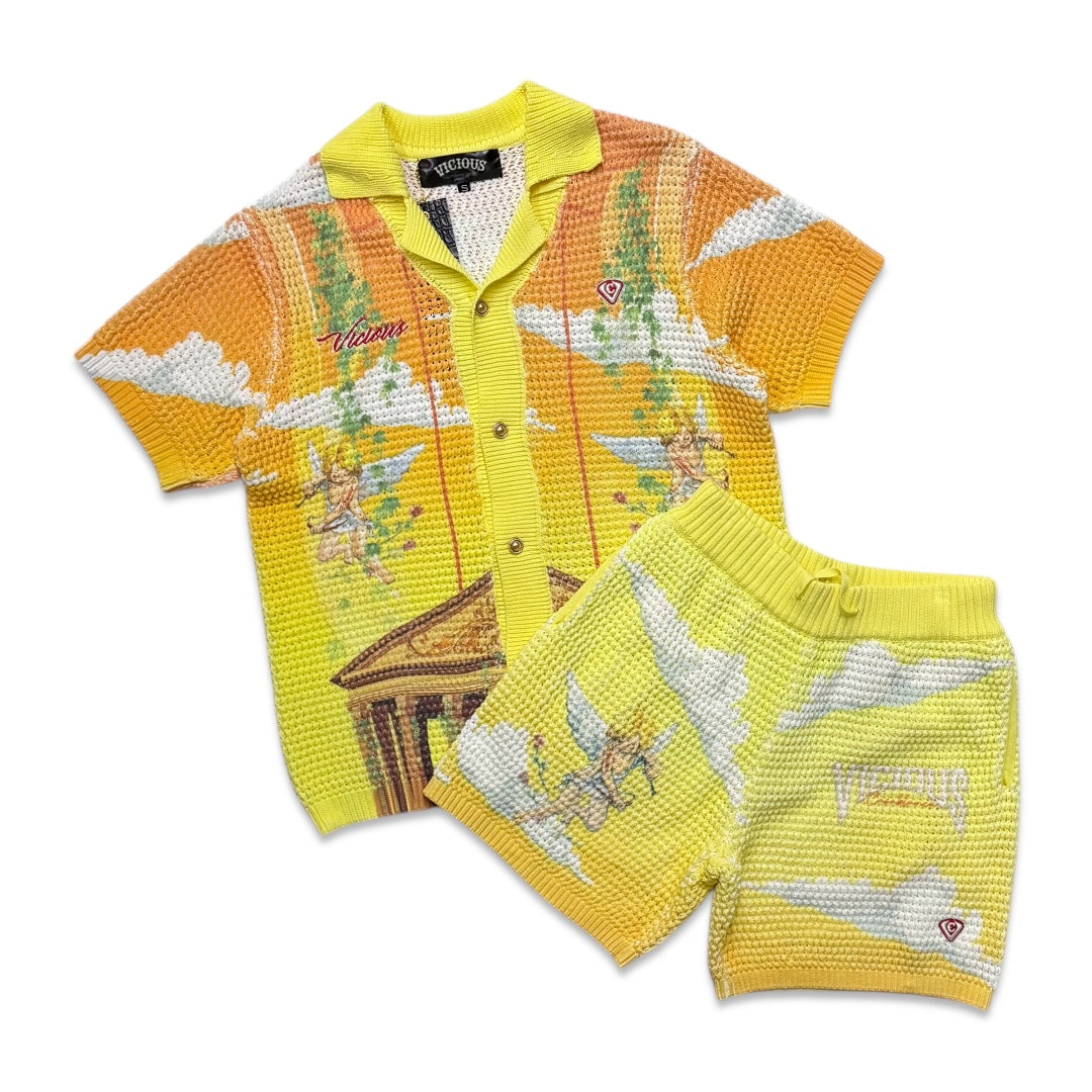 Civilized Men's Sunset Garden Button Down Short Set (Khaki)