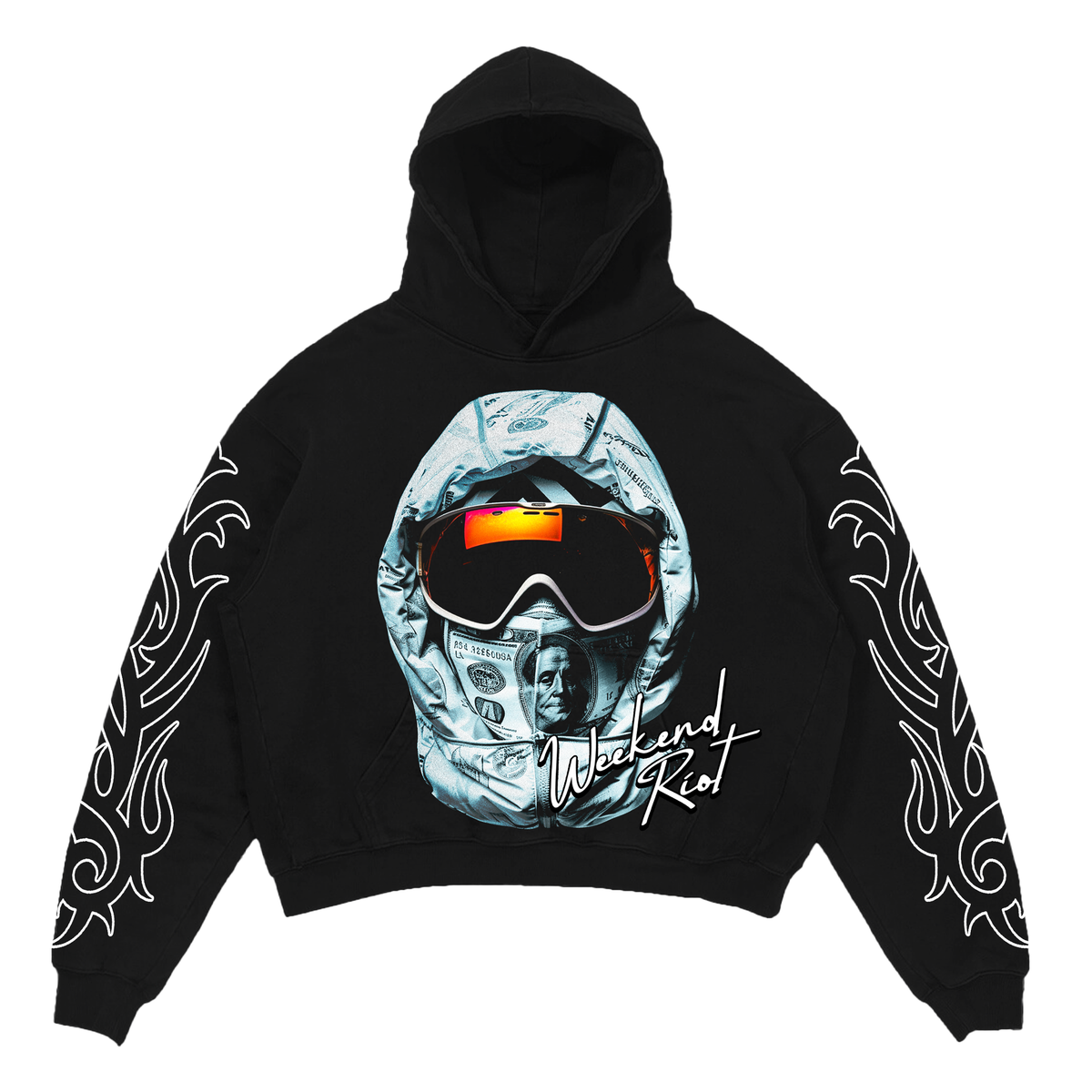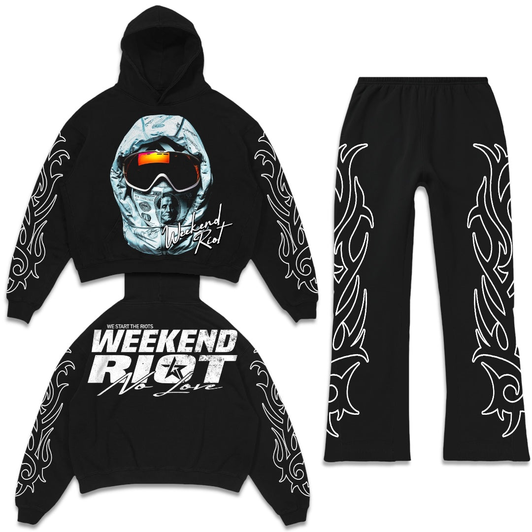 Rebel Denim French Terry Gloss Jet black Stones Stacked Jogger set