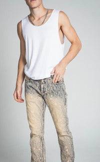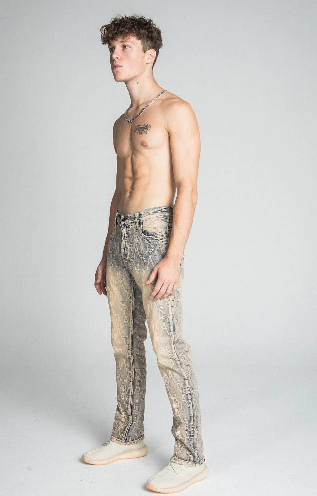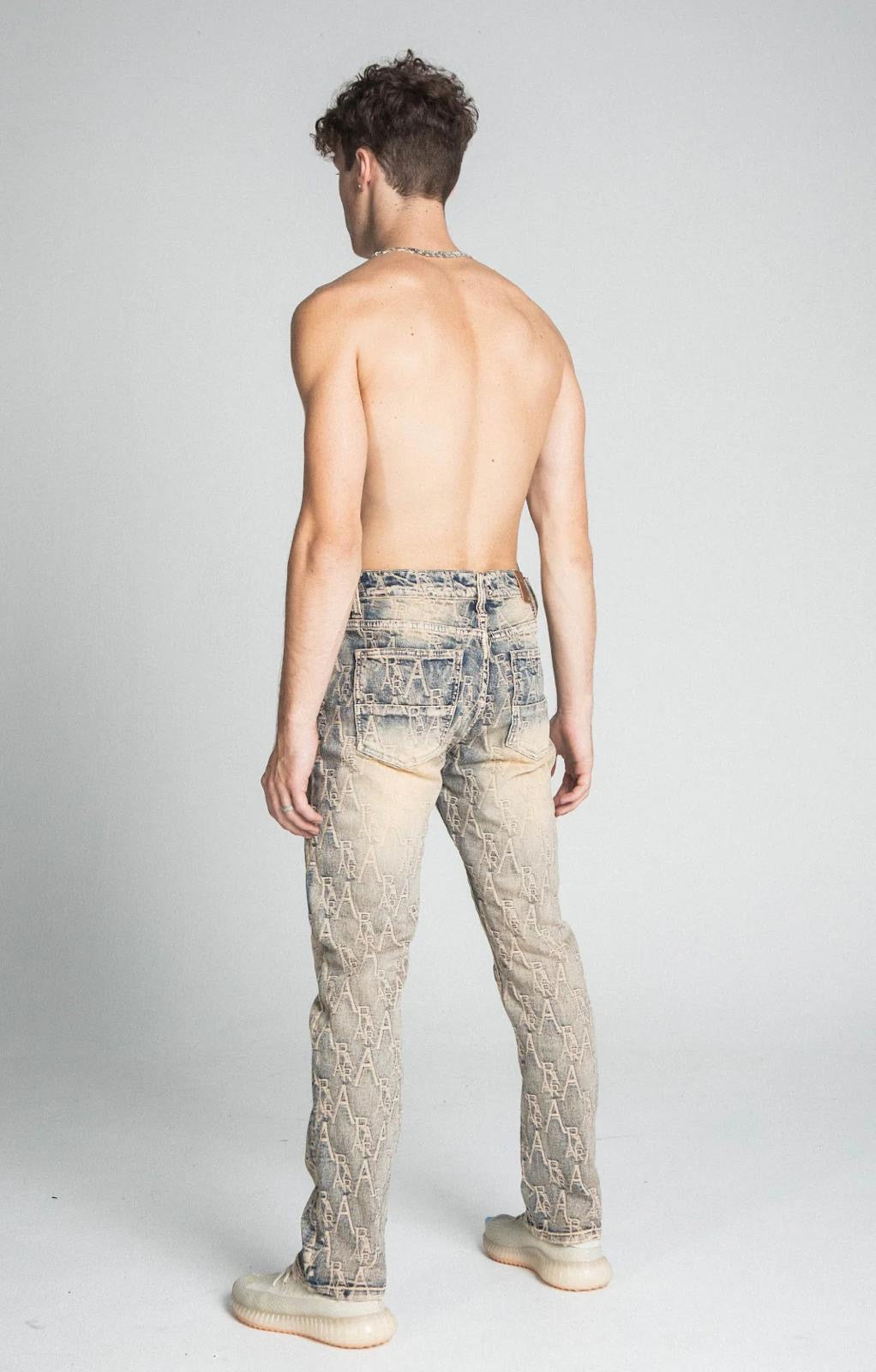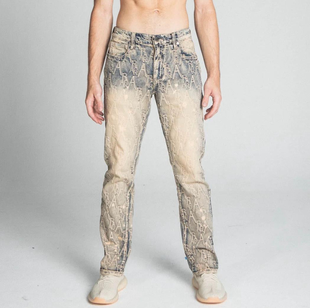 Armor Jeans Men’s Vintage Wash Cargo Stacked Jeans Blue Logo Embroidery