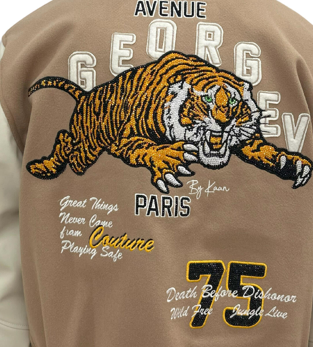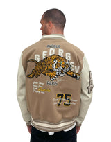 Avenue George (Beige/White 'Tiger Embroidered' varsity jacket)