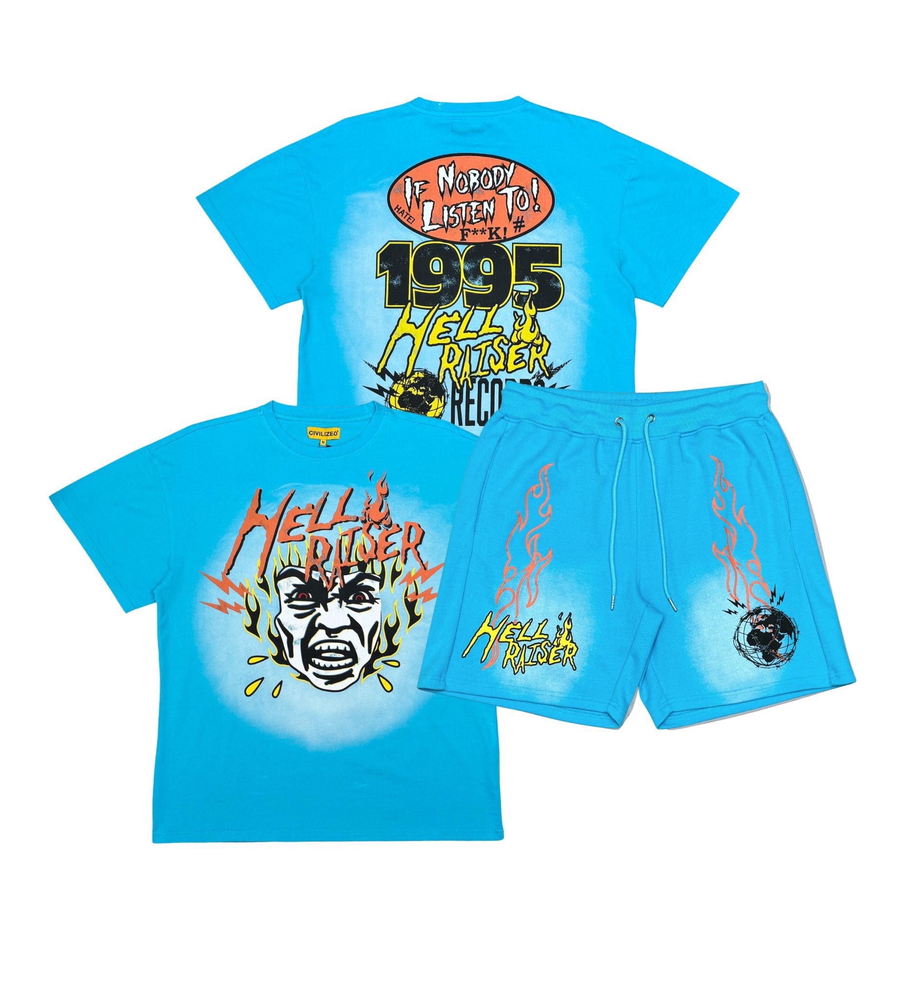 Civilized Men's Hell Raiser Records Short Set Aqua Blue