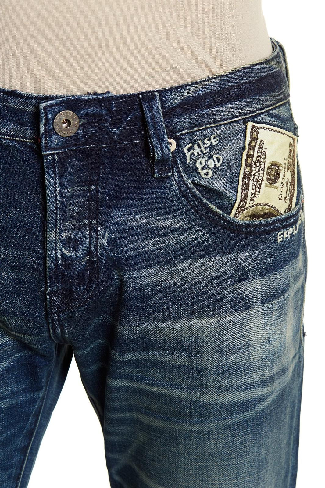 Cult of individuality (blue/cream cut printed money wash jean)