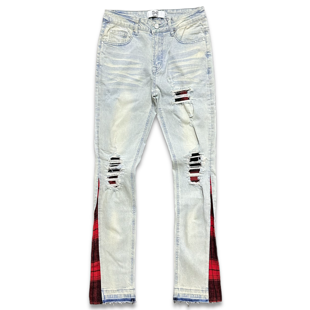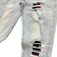 Dna premium (light blue /black & red handcraft skinny stacked denim jean)