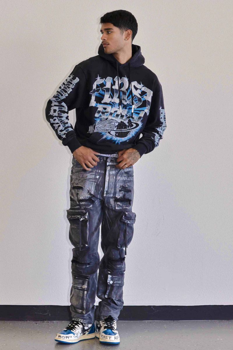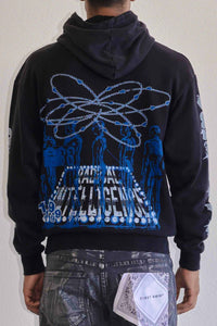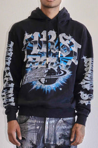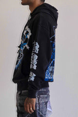 High quality washing primium graphic print sweat hoodie with shiny rhinestone. Featuring relaxed oversize silhouette with cozy feel, rib-knit banding at the cuffs hem for a comfortable fit and complete with an adjustable drawstring hood, center front hoodie pocket.