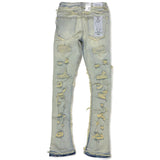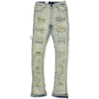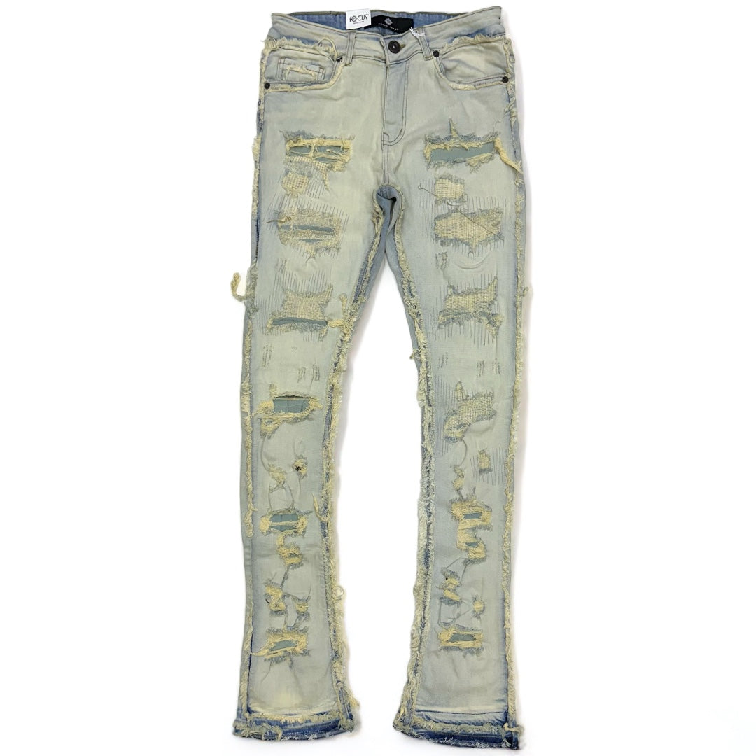 Focus denim (Tan wash frayed stitch stacked jean)