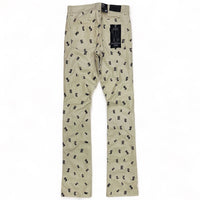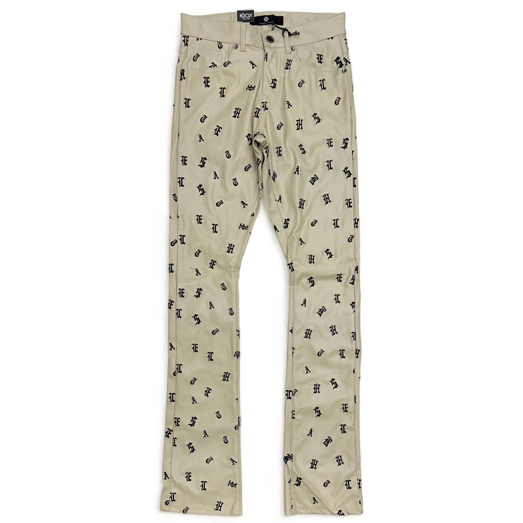 Focus (Tan "heartless leather print denim stacked jean)