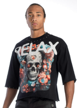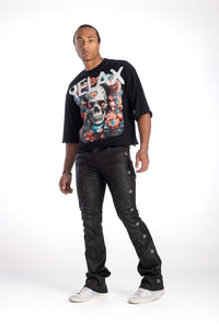 Kindred Men’s Rhinestone Floral Cropped Tee – Black