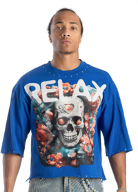 Kindred Men’s Rhinestone Floral Cropped Tee – Royal Blue
