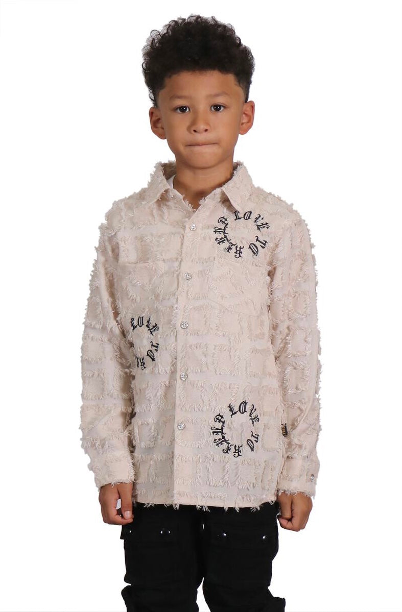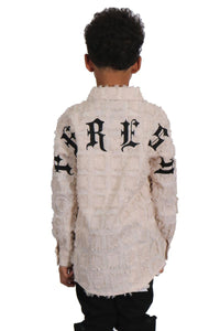 Kid's premium ripped & repaired shirt with heavy embroidery effects.
