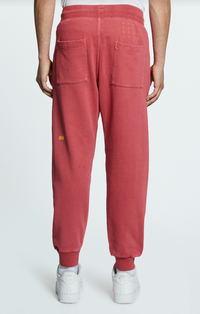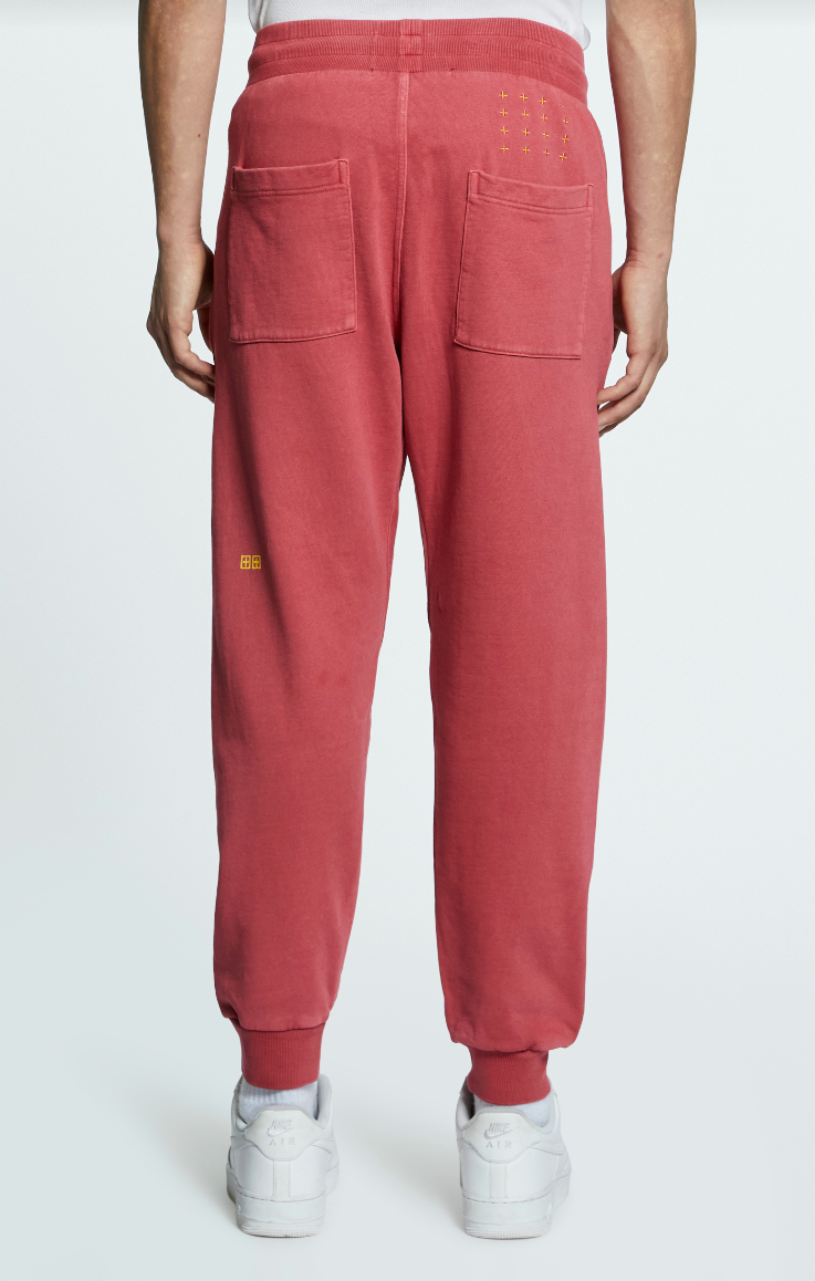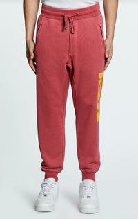 The Pixel Sign Restore Trak Sundown is constructed from premium loopback cotton fleece in a muted red colourway with a fleece wash. This style is designed with ribbed hem cuffs, a drawstring through an elasticated rib waistband. This tapered, relaxed cut track pant is a mid rise style featuring slanted welt pockets with zipper closure on the front and patch pockets on the back. Detailed with digitally printed Ksubi text on the front, and is finished with our signature Ksubi branding. Wear with the 'Pixel Sign Biggie Hoodie Sundown' or 'Pixel Sign Biggie Ss Tee Sundown' for a colour coordinated look.