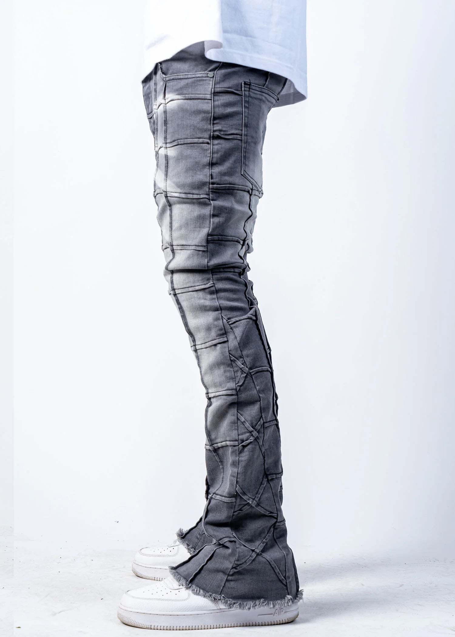 The Reves Grey Stacked Jeans, the ultimate addition to your wardrobe. Crafted with premium stretch denim, these jeans offer unmatched flexibility and a perfect fit for your hustle, night outs, or just to catch a vibe in some fly jeans.