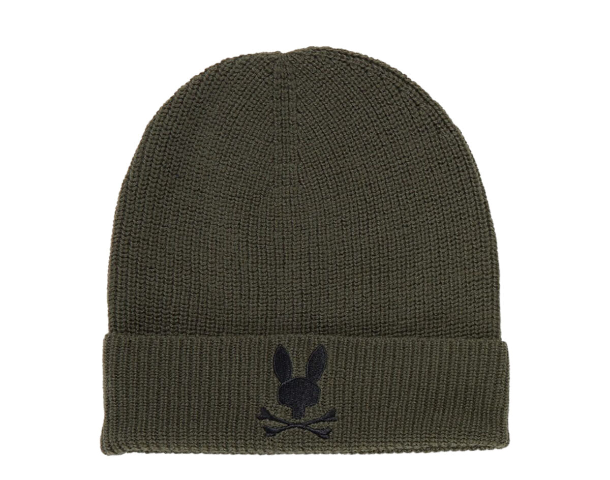 Psycho Bunny Merino Wool Dark Olive Beanie - B6A988U1HT