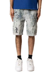 Reviews for Purple brand Worn Camouflage Emb shorts light indigo